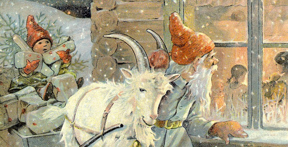 The Swedish Santa, or tomte, the folkloric predecessor to the modern Santa Claus, is, as always, working overtime. Luckily he’s accompanied by the trusty Christmas goat, a guardian spirit in old Nordic tradition, who keeps the journey steady. And as the sleigh glides through the snow, the tomte continues his faithful work of carrying cultural heritage forward. What generations have hauled, sledged and laughed along with finds fresh momentum in Jenny Nyström’s comforting brushstrokes and imagery that have become an indispensable part of Swedish Christmas tradition.