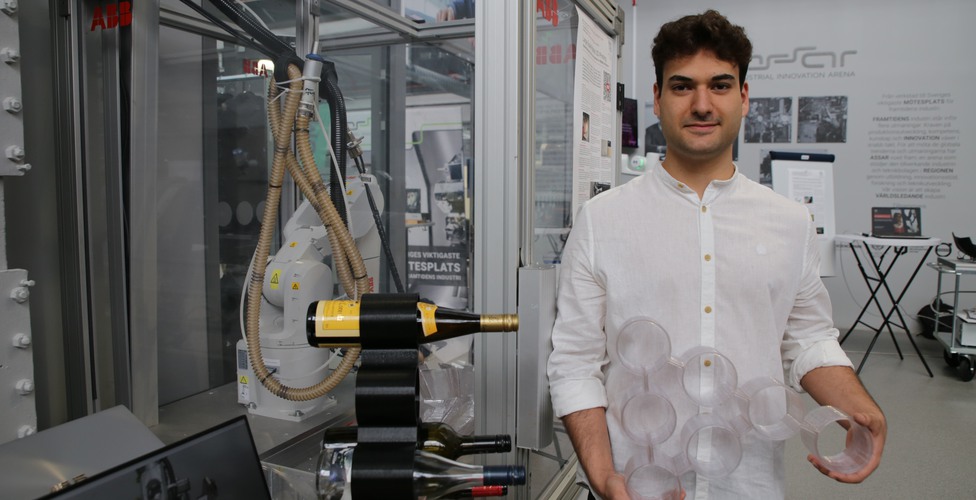 Pablo Nieto Pareja visade upp produkter skapade med hjälp av storskalig 3D-printning med robot, som vinställ, till exempel.