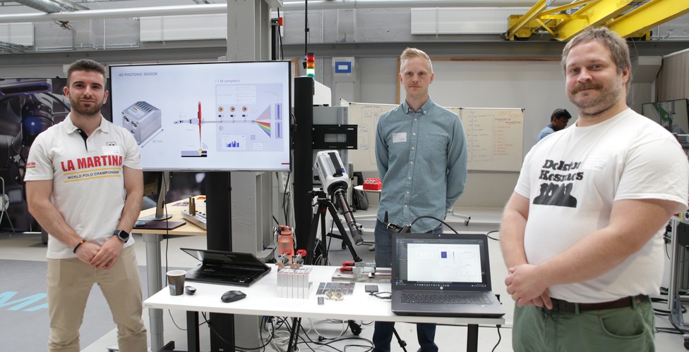 Masterstudenterna Dan Lönn, Manfred Persson och José Maria Cid visade upp hur man kan verifiera kvaliteter vid lasersvetsning med hjälp av ljussignaler.